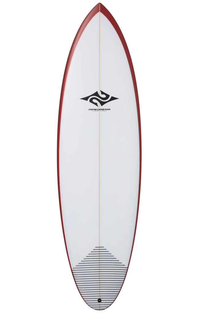 Compared with its cousin the cathedral hull runs much longer almost two thirds of the boards length then dives into a deep release vee so it can sit down and drive through turns. The hull causes so much lift particularly being this long so the vee is deeper so it does not skip around off the tail when the pressure is on.