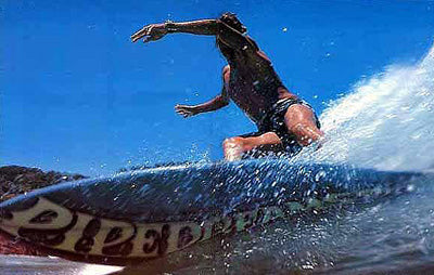 This board became a favourite of Guy’s in the early seventies and there was a full centre spread in Surfing World magazine of Guy laying a deep cutty flashing the nose to tail Pipedream spray at the camera. We made a few of these boards for him but none went as well as the one I shaped a small flute under the flyer. According to Guy at the time the dropped wing as I later called it, gave him heaps more squirt and bight and this really livened up the board. I have applied this dropped wing in many of my late boards with the same success.